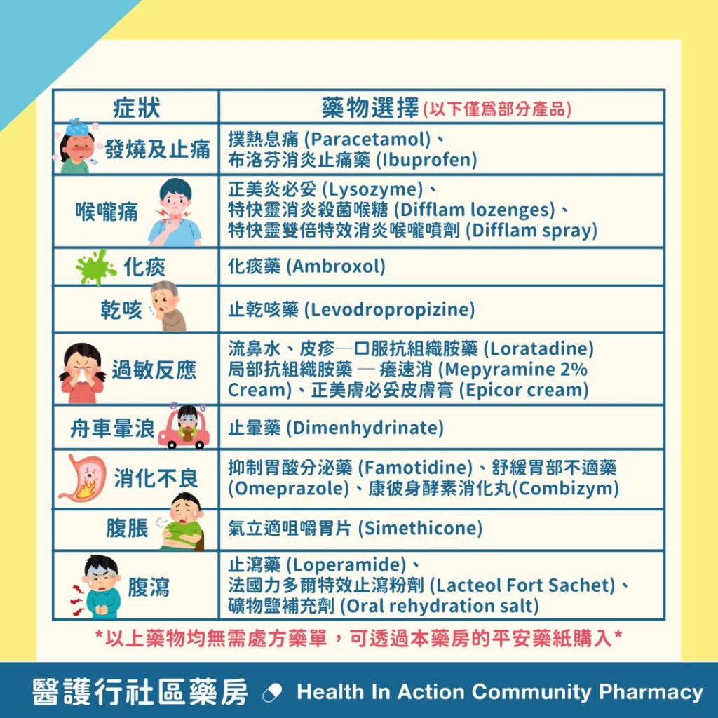 *以上藥物及產品為本藥房部分產品,均無需處方藥單,可透過下方資源連結購入。