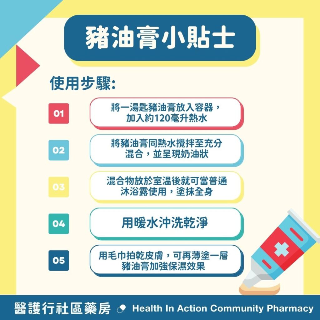 有濕疹皮膚嘅街坊,除咗可以勤力搽潤膚保濕膏,不妨考慮埋用乳化軟膏(俗稱豬油膏)代替沐浴露加強肌膚保濕啦😌