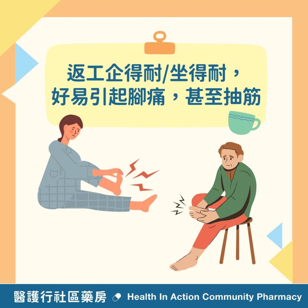 返工時長期企得耐,或者係Office坐耐咗🪑都容易引起腳部酸痛腫脹,甚至出現抽筋嘅情況,大家又知唔知點解會咁呢?一般腿部嘅靜脈有瓣膜防止血液受地心吸力影響而倒流,但當瓣膜功能出現毛病,又或者你屬於需長時間站立或坐低嘅打工仔,血液就容易積聚於下肢。長時間積聚易令血管變形,引起腿部抽筋、腫脹、無力、酸痛等不適,久而久之仲有可能惡化成靜脈曲張😱😱。如果遇到以上情況可以點處理?
