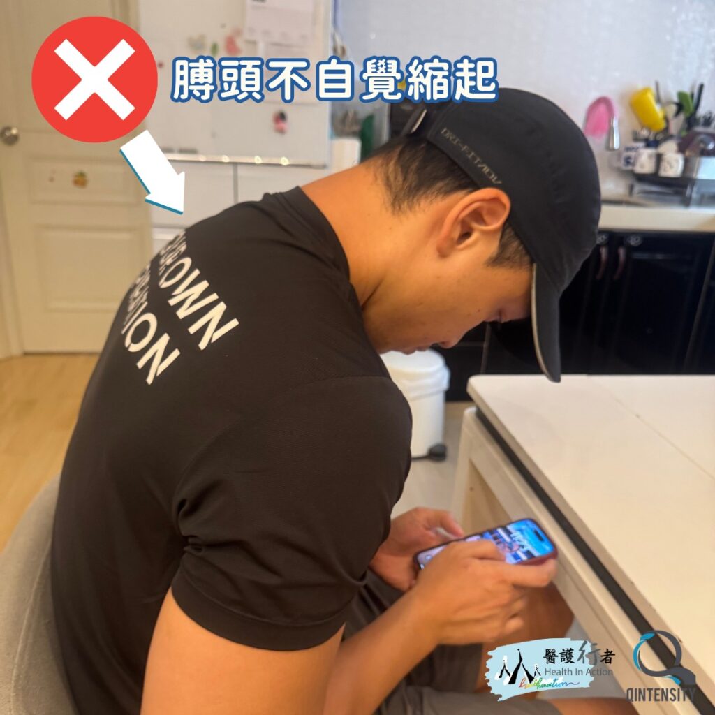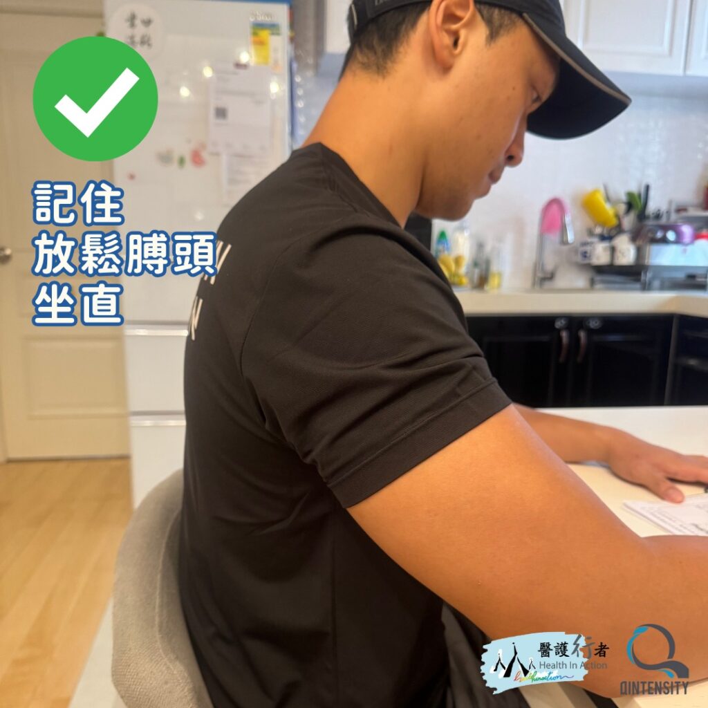 ➡️ 膊頭不自覺縮起?記住放鬆膊頭、坐直,雙腳平放地上