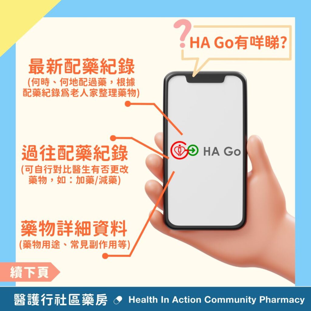 係醫管局跟進開嘅長期病患,照顧者可以善用「HA Go」流動應用程式入面嘅「藥物」單元,查閱老人家嘅最新配藥紀錄,包括幾時、係邊到配過藥,再根據配藥紀錄為老人家整理藥物。另外,亦可以查閱過往配藥紀錄,對比返醫生有無更改藥物,例如有無加藥減藥。除咗紀錄之外,仲可以查閱每隻藥物嘅詳細資料,例如藥物用途、常見副作用等。一app在手,即可輕鬆掌握老人家嘅用藥情況。