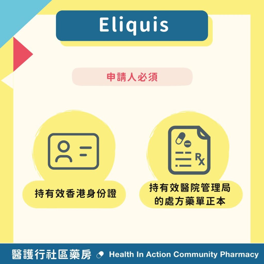 持有有效醫院管理局的自費藥物處方並符合資助條件,可享優惠價購買 Eliquis。