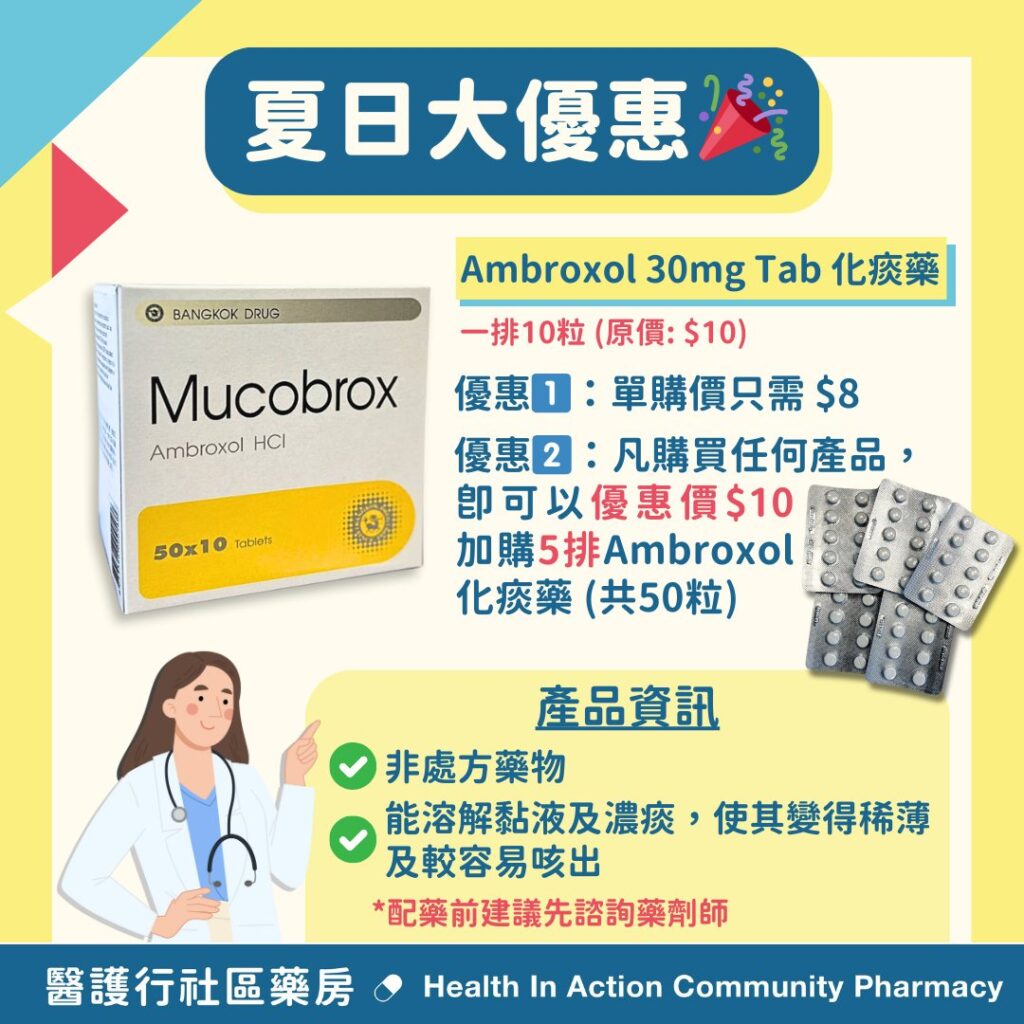 唔少街坊向我地藥劑師反映成日清唔走啲痰,搞到好唔舒服😩。有見及此,由5月31日起,我地決定推出久違嘅優惠大放送!今次針對痰咳問題推出【Ambroxol(Mucobrox) 30mg Tab 化痰藥】兩大優惠,大家可以考慮吓買定啲放係屋企看門口,以備不時之需啦!