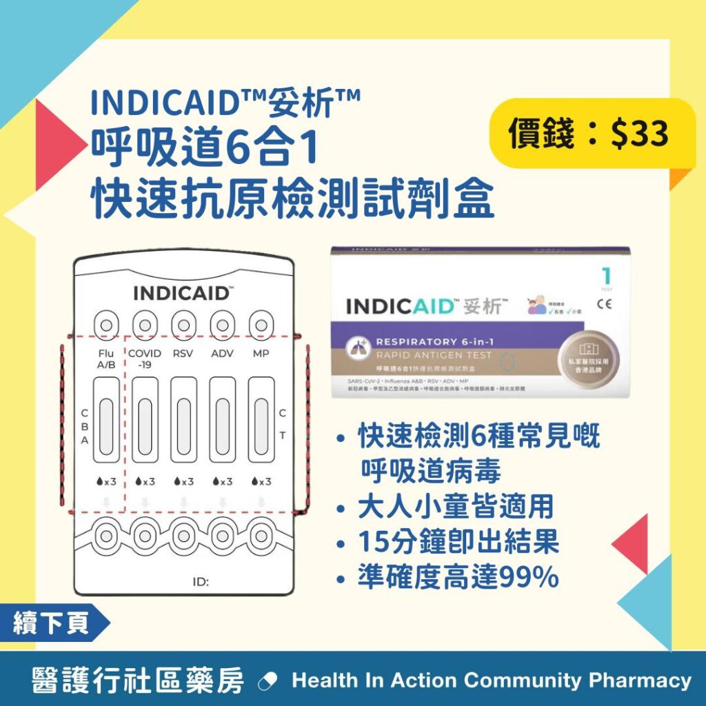 如果懷疑自己「中招」感染上述呼吸道病毒,想快速進行檢測,可以考慮入手本藥房最近推出嘅「INDICAID™妥析™呼吸道6合1快速抗原檢測試劑盒」。一盒就可以快速檢測以上6大常見呼吸道病毒🦠,包括:新冠病毒、甲/乙型流感病毒、呼吸道合胞病毒、腺病毒、肺炎支原體。可以把握感染後黃金48小時,提早隔離,減低重症同傳播風險😷。