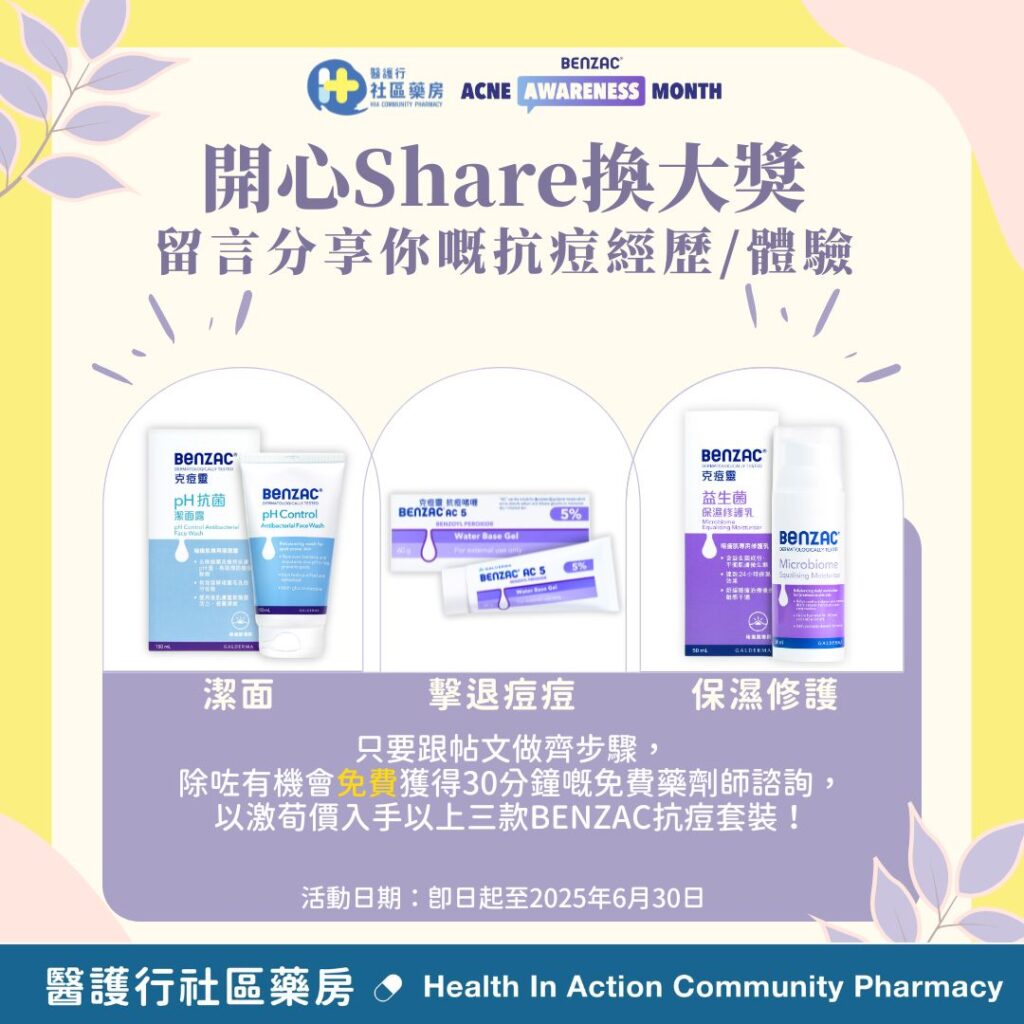 #Benzac#醫護行社區藥房#暗瘡關注月#健康肌膚#護膚日常#暗瘡挑戰