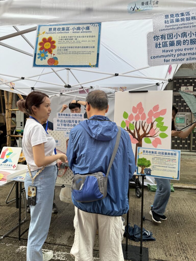 Health In Action Community Pharmacy was invited by Chow Tai Fook Charity Foundation and Social Ventures Hong Kong’s “Come Phil Festival” to set up a booth in Sham Shui Po. During the event, we collected public opinions on common minor ailments and community pharmacy services, while interactive games were organized to enhance public awareness about community pharmacies and pharmacists’ roles.