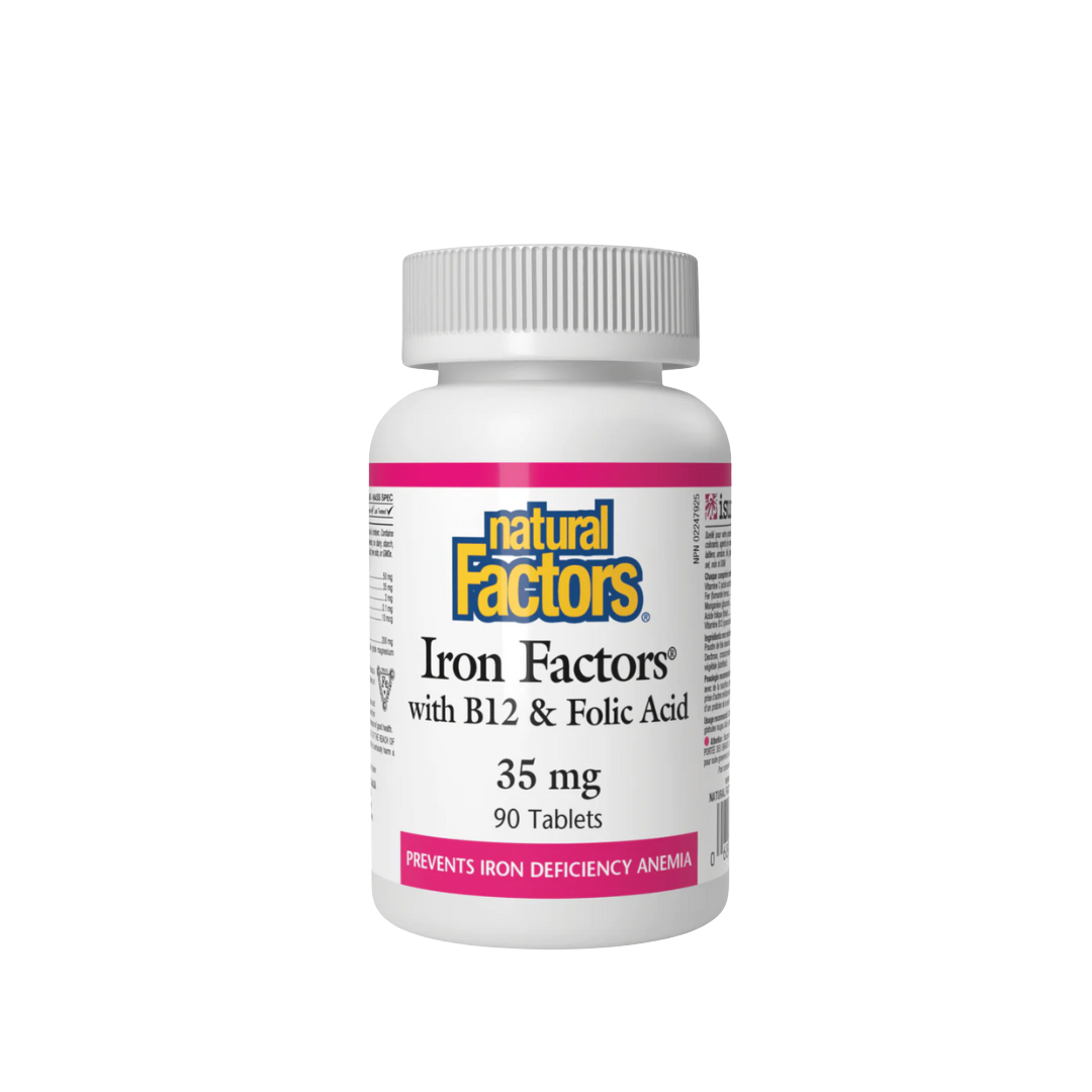 Natural Factors Iron Factors with B12 and Folic Acid helps in the formation and proper function of red blood cells, as well as in the prevention of iron deficiency anemia.