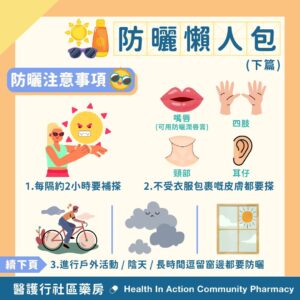 上篇教咗大家唔少防曬概念,大家又知唔知點搽先叫防曬充足呢?如不幸曬傷,大家可以跟住以下步驟護理或者諮詢本藥房藥劑師