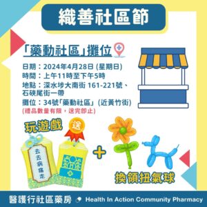 本藥房早前受邀周大福慈善基金及香港社會創投基金(SVhk)聯手策劃嘅「織善社區節」,活動中收集到大量街坊遇到嘅小病小痛😷🤒及對社區藥房嘅意見💬